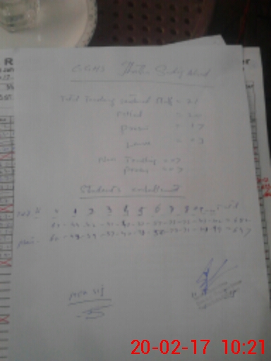 | Total no. of Classrooms: 5 No. of Classrooms Used for Teaching: 5 No. of Classrooms Storing Old Furniture, FTBs, etc: 0Comments if Any: 0 |