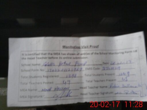 | Attendance Register | Head Teacher | MEA with School | Visit Proof |
