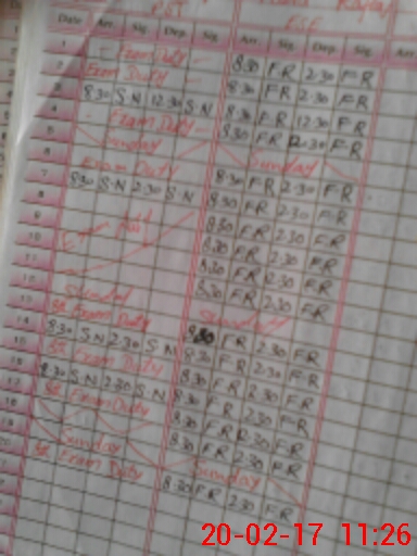 | 33**** | Sh**** Na**** | PTC | 0 | 0 | 0 | 0 | 0 | 0 | 0 | 0 | 0 | Exam Duty | |
