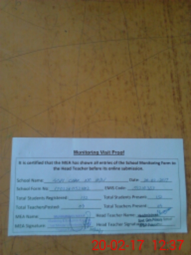 | Attendance Register | Head Teacher | MEA with School | Visit Proof |