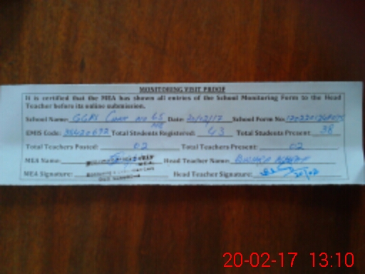 | Attendance Register | Head Teacher | MEA with School | Visit Proof |