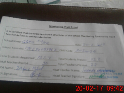 | Attendance Register | Head Teacher | MEA with School | Visit Proof |