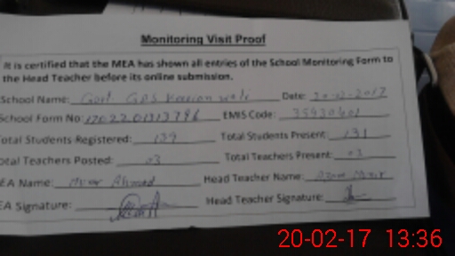 | Attendance Register | Head Teacher | MEA with School | Visit Proof |