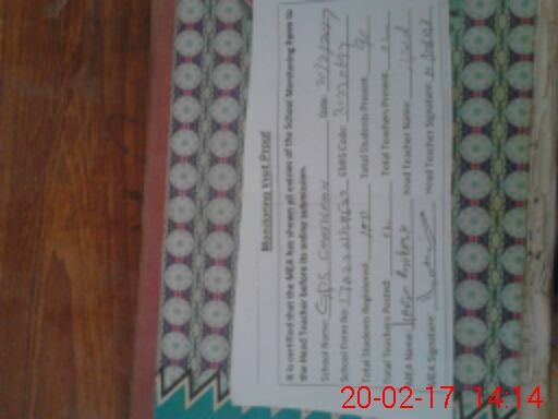 | Attendance Register | Head Teacher | MEA with School | Visit Proof |