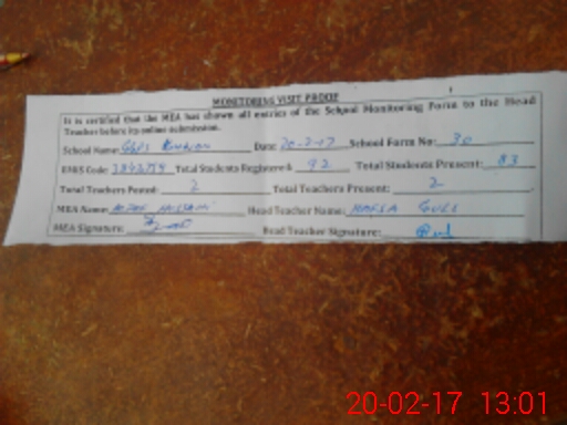 | Attendance Register | Head Teacher | MEA with School | Visit Proof |