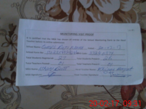 | Attendance Register | Head Teacher | MEA with School | Visit Proof |