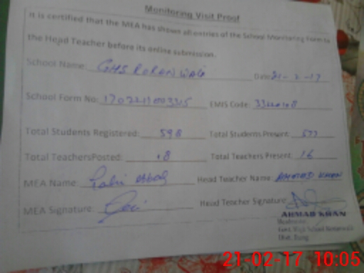 | EMIS Code: 33220108 | Name of School: GHS RORAN WALI | |||