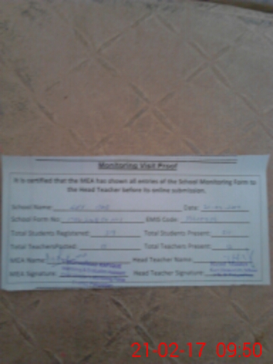 | Attendance Register | Head Teacher | MEA with School | Visit Proof |