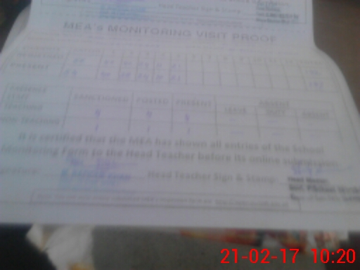 | Attendance Register | Head Teacher | MEA with School | Visit Proof |
