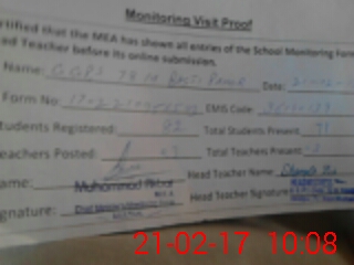 | Attendance Register | Head Teacher | MEA with School | Visit Proof |