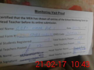 | Attendance Register | Head Teacher | MEA with School | Visit Proof |