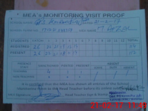 | EMIS Code: 36410199 | Name of School: GPS KARAM PUR JOOTA, P/O KUKKAR HATTA, KABIRWALA | |||