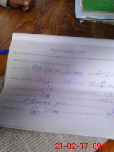 | Certified that this School was Inspected by the Undersigned MEA/DMO Today and the Information Stated Above is as Per Record. | |||||