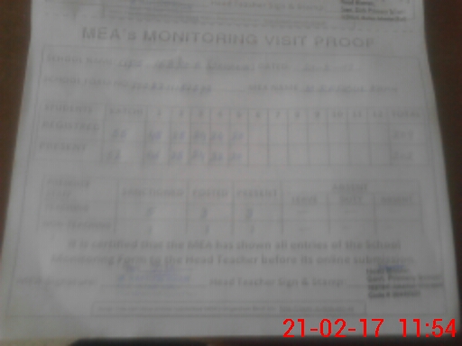 | Attendance Register | Head Teacher | MEA with School | Visit Proof |