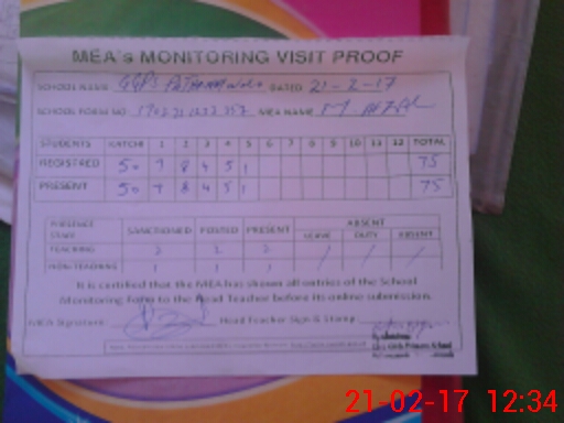 | Attendance Register | Head Teacher | MEA with School | Visit Proof |