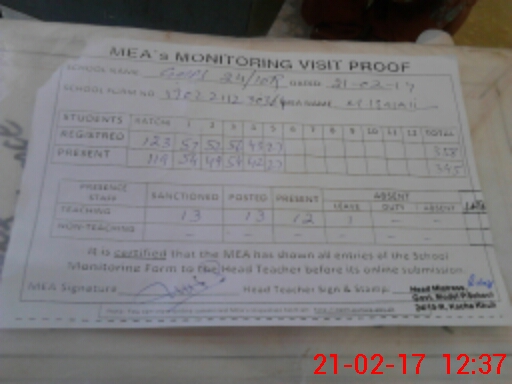 | Attendance Register | Head Teacher | MEA with School | Visit Proof |