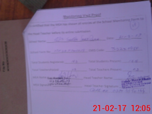 | Attendance Register | Head Teacher | MEA with School | Visit Proof |