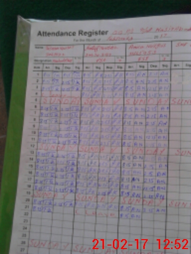 | CNIC | Full Name | Designation | R/C | Absence During Last Calender Month |