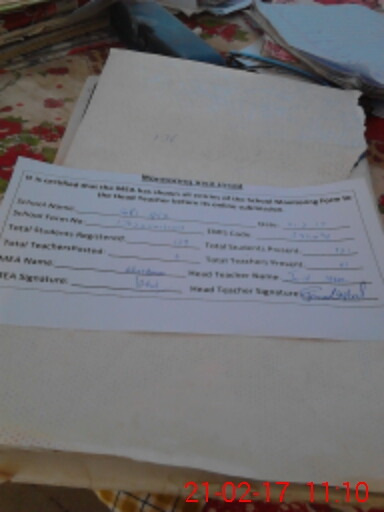 | Attendance Register | Head Teacher | MEA with School | Visit Proof |