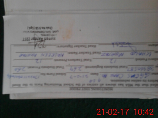 | Name: Sa**** No**** Designation: (School Headmaster's/Headmistress's) S.S.T.(Arts) Phone/Cell Number: 03**** |