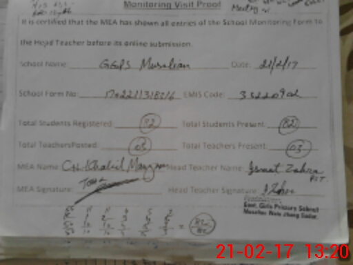 | Attendance Register | Head Teacher | MEA with School | Visit Proof |