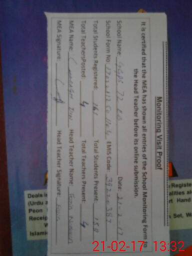 | EMIS Code: 39220387 | Name of School: GGPS 72 EB MUHAMMAD NAGAR ARIFWALA | |||