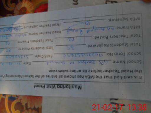 | Certified that this School was Inspected by the Undersigned MEA/DMO Today and the Information Stated Above is as Per Record. | |||||