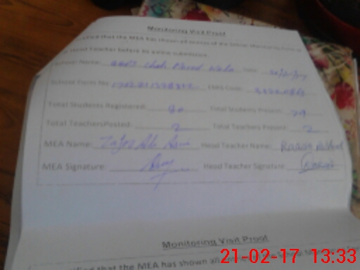 | Attendance Register | Head Teacher | MEA with School | Visit Proof |