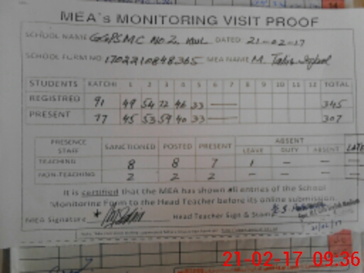 | Certified that this School was Inspected by the Undersigned MEA/DMO Today and the Information Stated Above is as Per Record. | |||||