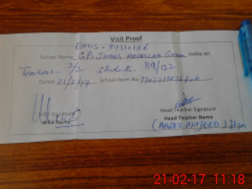 | EMIS Code: 39310186 | Name of School: GPS JHANG ABDULLAH SHAH | |||