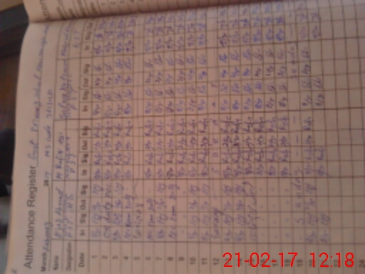 | CNIC | Full Name | Designation | R/C | Absence During Last Calender Month |