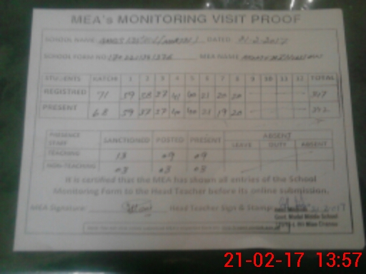 | Attendance Register | Head Teacher | MEA with School | Visit Proof |
