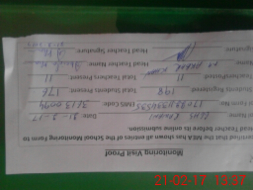 | Name: Ma**** Za**** Designation: (School Headmaster's/Headmistress's) HEADMISTRESS Phone/Cell Number: 03**** |