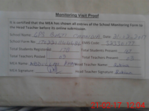 | EMIS Code: 32330177 | Name of School: GPS BASTI CHANDIA | |||