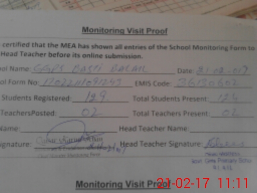 | Certified that this School was Inspected by the Undersigned MEA/DMO Today and the Information Stated Above is as Per Record. | |||||