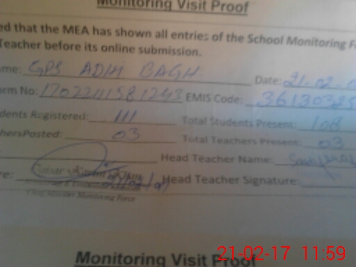 | EMIS Code: 36130325 | Name of School: GPS ADHI BAGH MOZA TARAGARH P/O KHOKHAR | |||