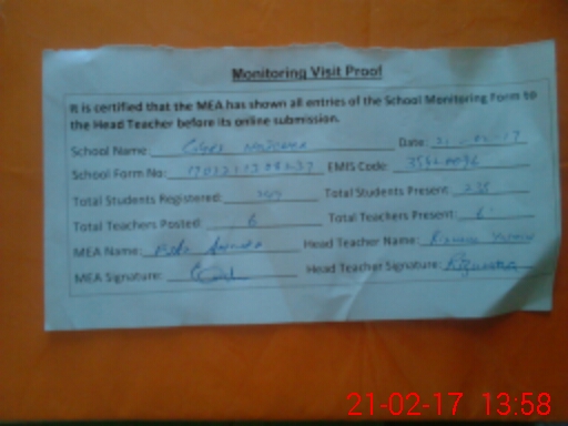 | Attendance Register | Head Teacher | MEA with School | Visit Proof |