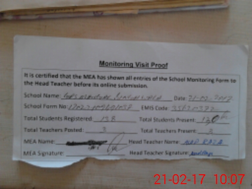 | Attendance Register | Head Teacher | MEA with School | Visit Proof |
