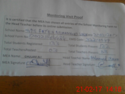 | EMIS Code: 32310049 | Name of School: GPS FATEH MUHAMMAD WALA | |||