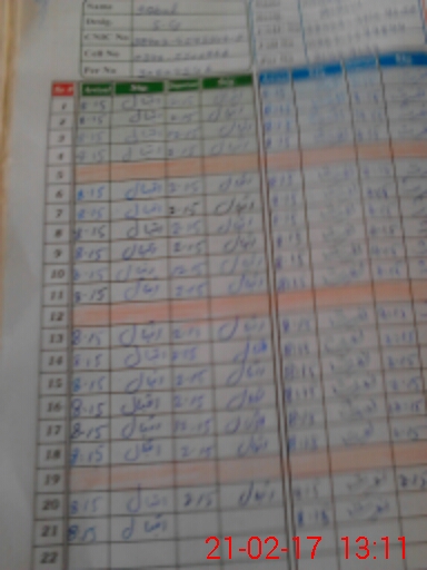 | CNIC | Full Name | Designation | R/C | Absence During Last Calender Month |