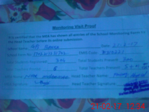 | EMIS Code: 31310221 | Name of School: GPS BANKA (After Noon) | |||