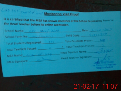 | Certified that this School was Inspected by the Undersigned MEA/DMO Today and the Information Stated Above is as Per Record. | |||||