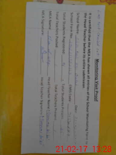 | Certified that this School was Inspected by the Undersigned MEA/DMO Today and the Information Stated Above is as Per Record. | |||||