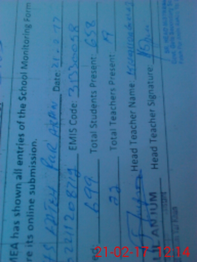 | Certified that this School was Inspected by the Undersigned MEA/DMO Today and the Information Stated Above is as Per Record. | |||||