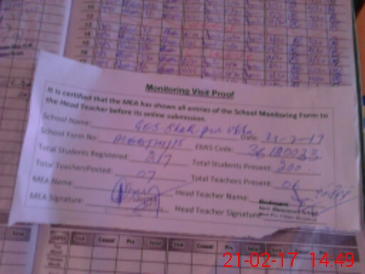 | Certified that this School was Inspected by the Undersigned MEA/DMO Today and the Information Stated Above is as Per Record. | |||||