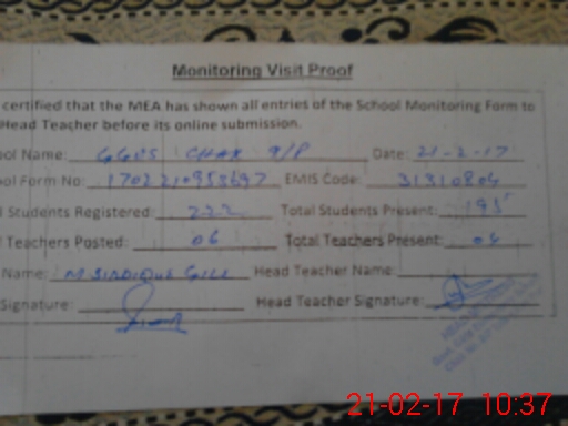 | Certified that this School was Inspected by the Undersigned MEA/DMO Today and the Information Stated Above is as Per Record. | |||||