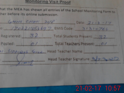 | EMIS Code: 31310764 | Name of School: GPS CHAK NO 21 P | |||