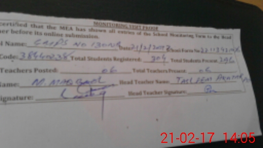 | Certified that this School was Inspected by the Undersigned MEA/DMO Today and the Information Stated Above is as Per Record. | |||||
