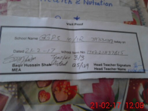 | School Visited by School Health & Nutrition Supervisor (No. of Visits) | 2 | Name1: | Abdul Munim | Name2: | Abdul Munim |