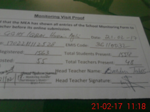 | EMIS Code: 36110032 | Name of School: GGHS IQBAL HUSSAIN AGAHI ROAD MULTAN | |||